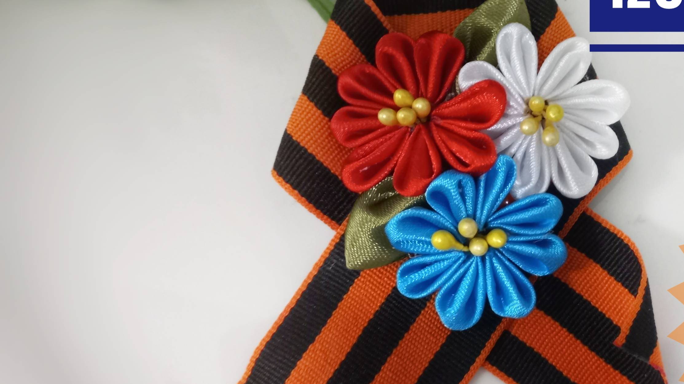 Брошь на 9 мая из георгиевской ленты и цветами триколор своими руками