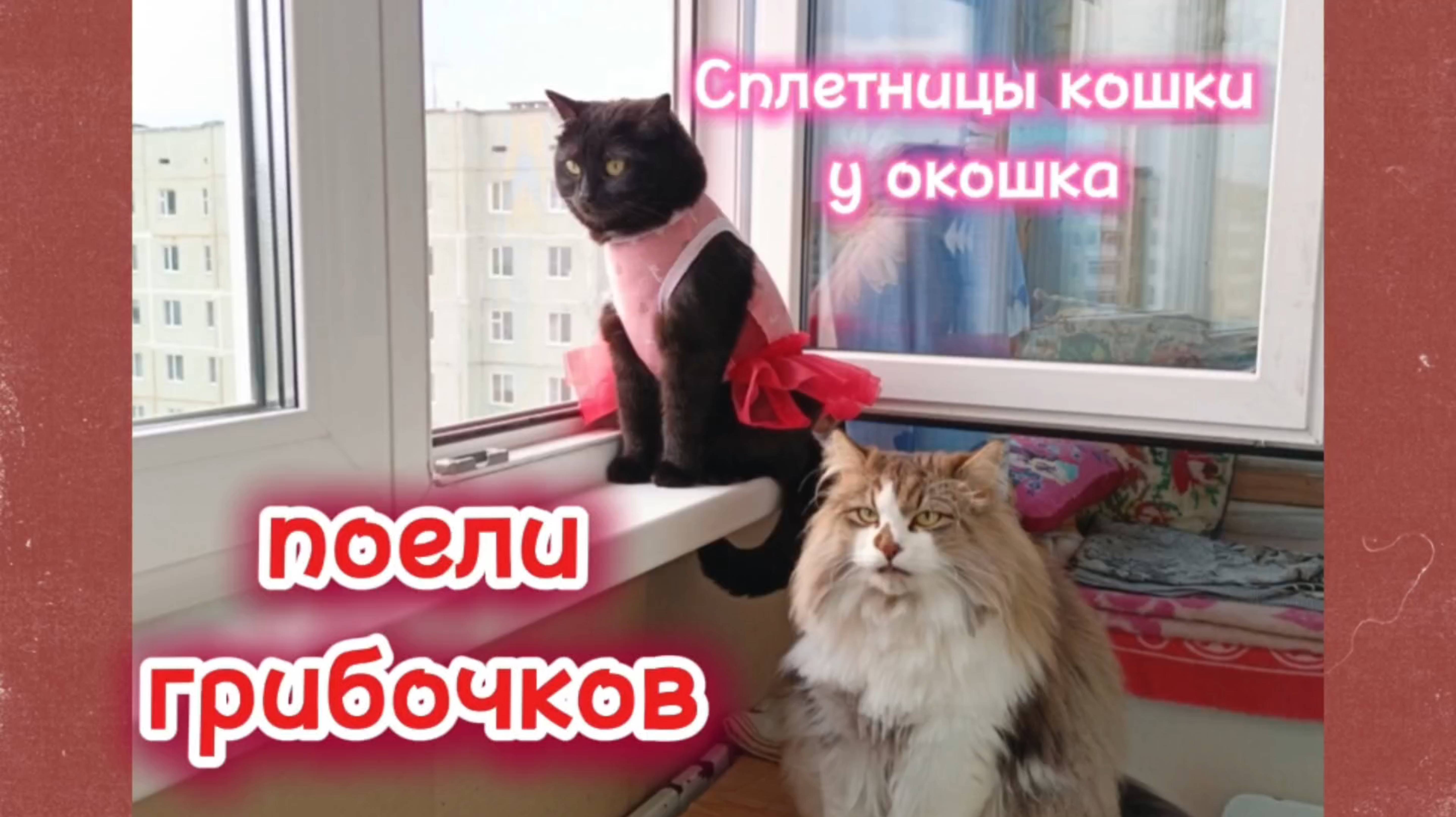 Поели грибочков. Кошки с озвучками. Сплетницы кошки у окошка.