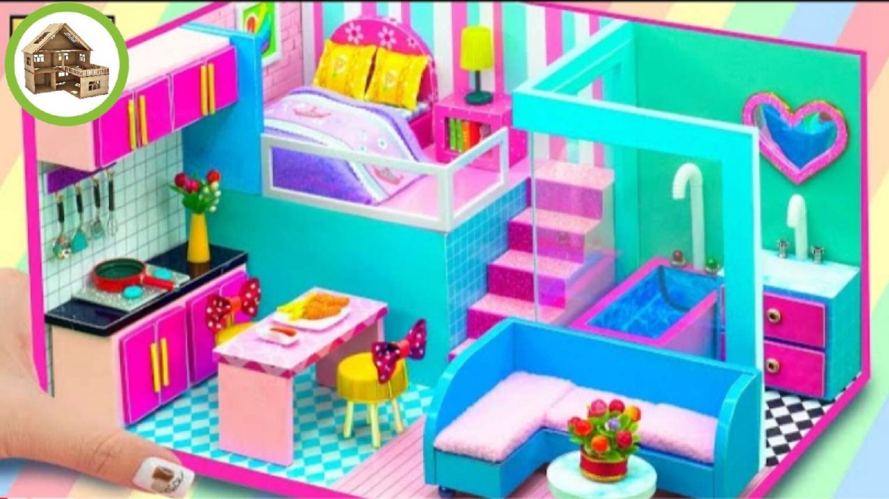 Красивый Миниатюрный домик ванная комната, кухня, спальня, гостинная для всей семьи из картона /278