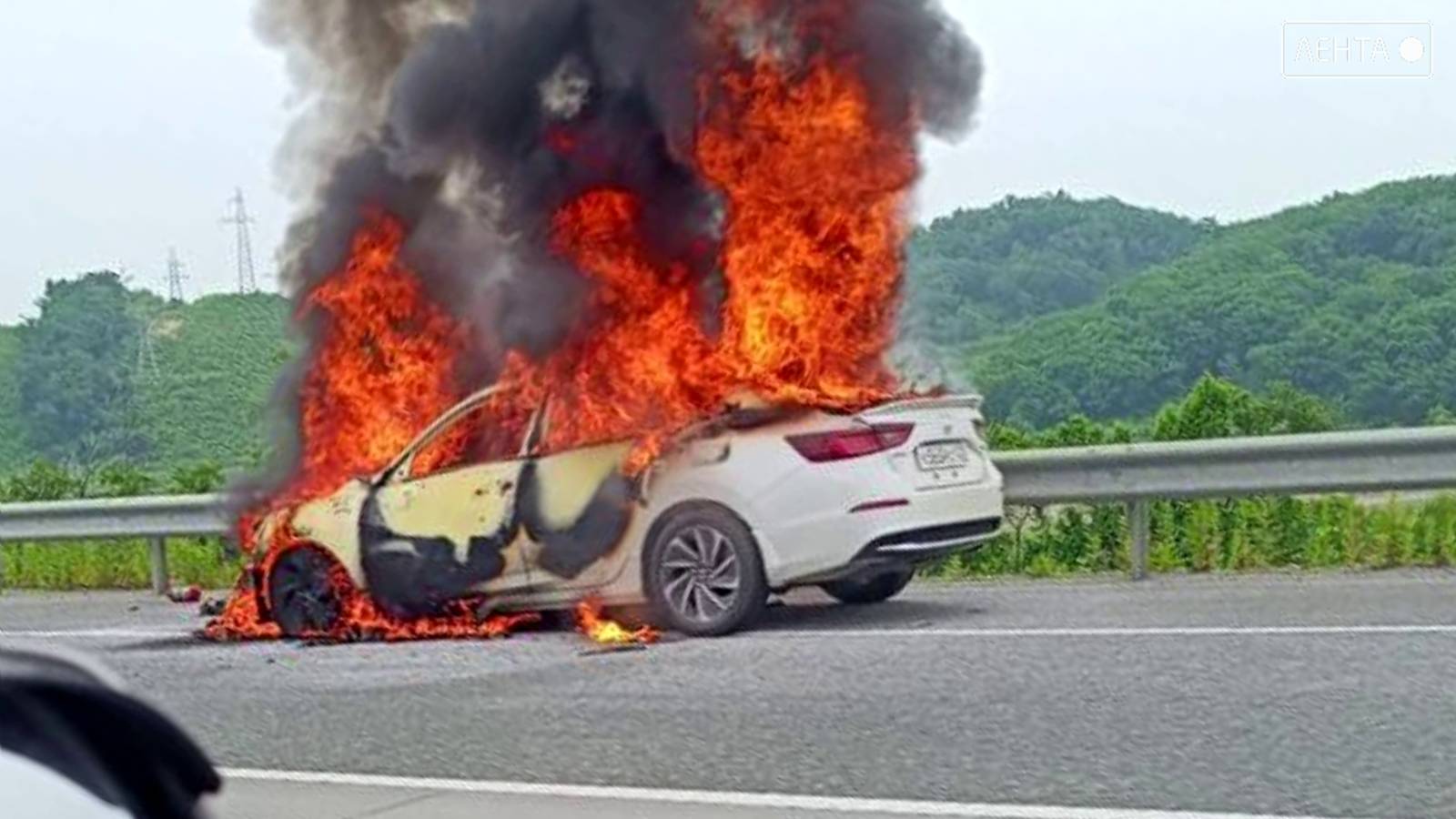 Днём на объездной трассе, в районе поворота на посёлок Шкотово произошло возгорание автомобиля. По прибытию пожарных автомобиль был охвачен пламенем. В результате пожара автомобиль был уничтожен огнём полностью. Погибших и пострадавших нет. Причина пожара и ущерб устанавливаются.