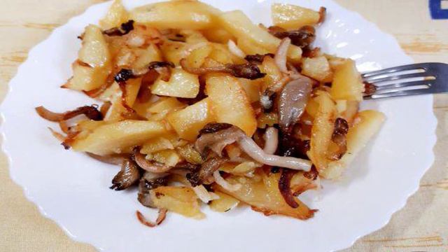Картошка жареная с грибами и сельдереем