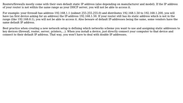 Router IP does not appear on network Helpful? Please support me on Patreon: https://www.patreon.com/roelvandepaar With thanks & praise to God, and with thanks to the many people who have made this project possible! | Content (except music & images) licensed under CC BY-SA https://meta.stackexchange.com/help/licensing | Music: https://www.bensound.com/licensing | Images: https://stocksnap.io/license & others | With thanks to user Terry (superuser.com/users/74177), user dylan7 (superuser.com/users/410239), user Beerman58 (superuser.com/users/981809), and the Stack Exchange Network (superuser.com/questions/943902). Trademarks are property of their respective owners. Disclaimer: All information is provided "AS IS" without warranty of any kind. You are responsible for your own actions. Please contact me if anything is amiss at Roel D.OT VandePaar A.T gmail.com
