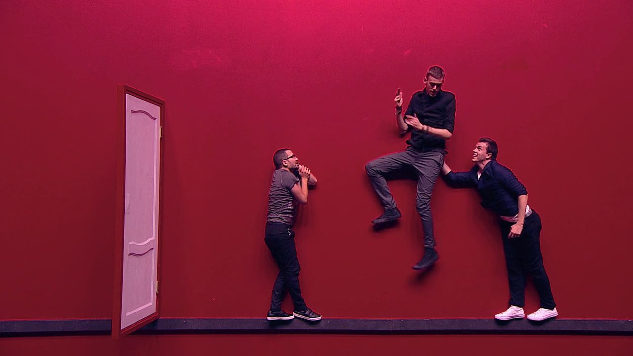 Импровизация «Красная комната». В красную комнату приглашаются все актёры шоу, там они, лёжа на полу, изображают разные миниатюры, которые им даёт ведущий - Павел Воля. Ситуации: Девушка занимается с тренером фитнесом и приходит ревнивый муж. Кукольный театр и арт-хаус.
