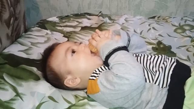 Малыш ест мандарин)))