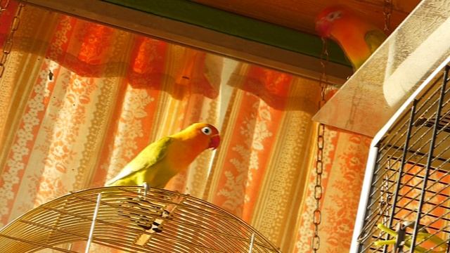 Пара золотистых Фишеров удрала из клетки и стала обследовать птичник#неразлучники Фишера