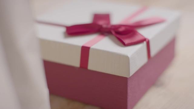 Крупный план романтического валентинового подарка в подарочной упаковке на столе в фокусе. #shorts
