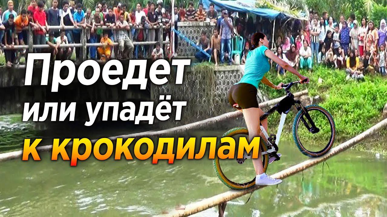 ОПАСНЫЙ ПРОЕЗД НА ВЕЛОСИПЕДЕ В ИНДОНЕЗИИ