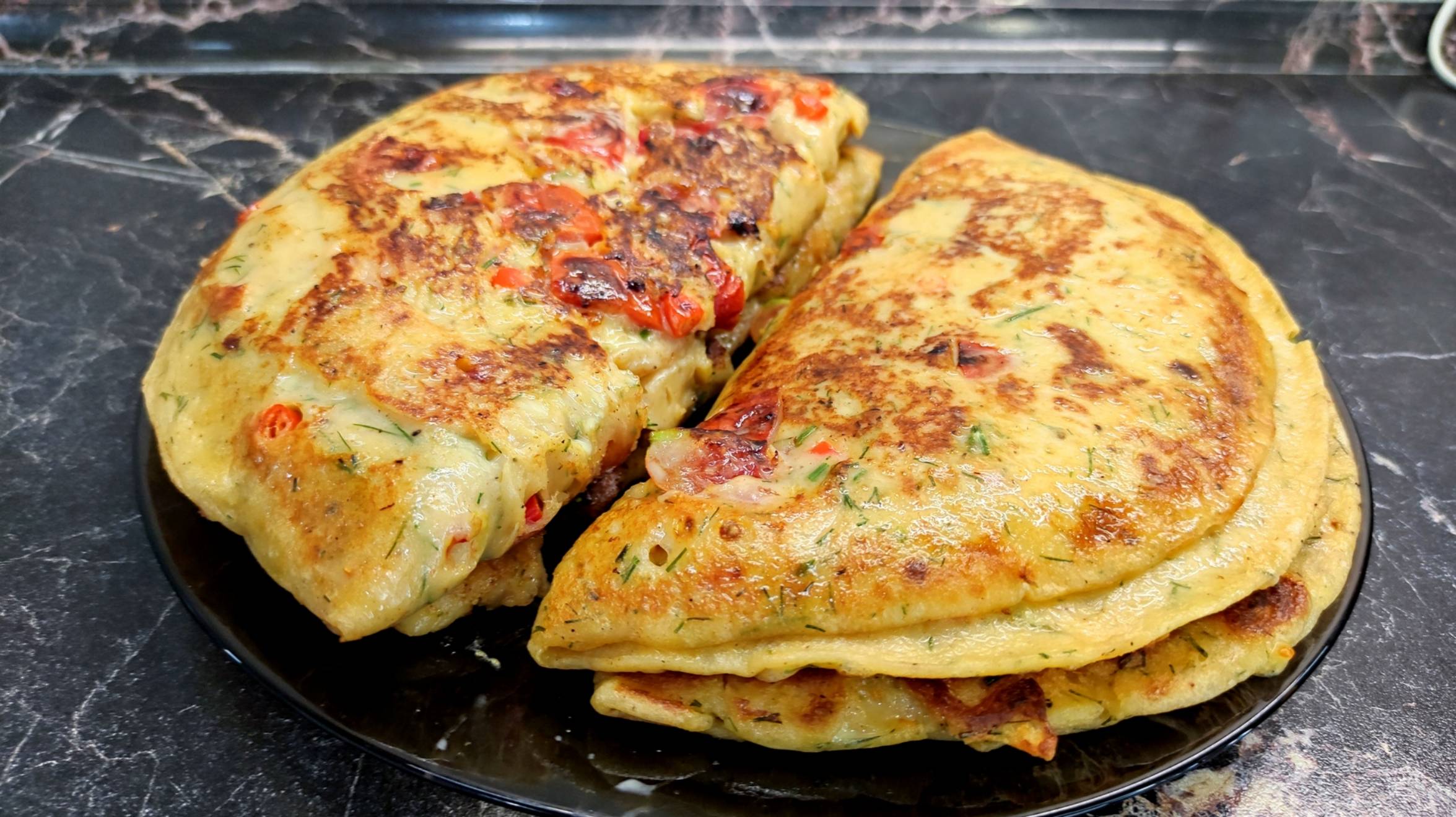 Сытный и вкусный завтрак. Лепёшки с сыром и помидорами. Рецепт завтрака.