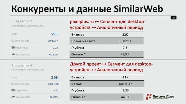 Как работать со статистикой сайта? Что можно увидеть в Яндекс.Метрике? Какие данные может найти в счетчике SEO специалист? Руководитель департамента SEO и рекламы группы компаний «Пиксель Холдинг» Дмитрий Севальнев расскажет о: 1. Распространении сервисов статистики от поисковых систем в рунете 2. Сборе и анализе информации. Индексации. 3. Факторах, вероятно, используемых для ранжирования: - поведение пользователей - вявление аудиторий проекта: срезы - хостовые метрики - технические показатели 4. Работе с данными счетчика для SEO-специалиста: - настройка - контрольные срезы и выгрузки - вычисление KPI работ по SEO - корректировки оптимизации сайта ------------------------ Другие видео с конференций в тематическом плейлисте - https://www.youtube.com/playlist?list=PLc3HbRI7hx8atzOldiml1_WdIv0bJKrb_ Хочешь продвигать сайт самостоятельно? Регистрируйся в https://seopult.ru Не хвататет знаний? ПОДПИШИСЬ НА КАНАЛ или зарегистрируйся на бесплатный семинар в https://cybermarketing.ru Хочешь повысить конверсию на своем сайте? Узнай как на https://intarget.ru ! -~-~~-~~~-~~-~- Обязательно посмотрите: "Как правильно настроить и использовать UTM метки?" https://www.youtube.com/watch?v=xhyO9eCES14 -~-~~-~~~-~~-~-