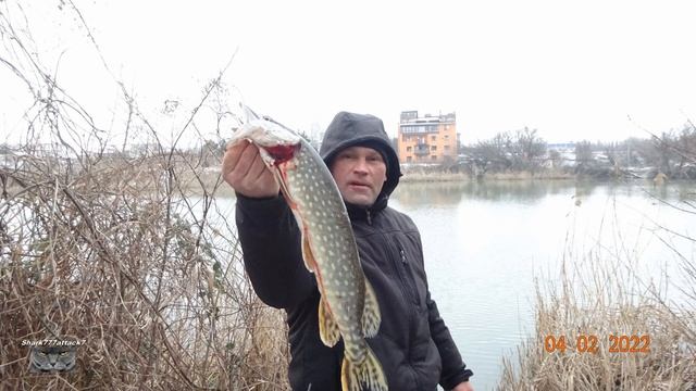 Щука в феврале на живца.Пруд.2022.