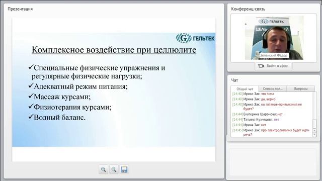 Вебинар посвящен вопросам коррекции фигуры с применением косметики Гельтек. В рамках вебинара мы рассмотрим, как избавиться от лишнего веса, жировых ловушек, «апельсиновой корки» и улучшить упругость и гладкость кожи тела с помощью аппаратных косметологических методик. А именно, микротоковой терапии, вакуумного и вакуумно-роликового массажа, RF-лифтинга, обёртываний, ручного массажа, лазерной терапии. Обсудим, что такое лимфодренаж, когда могут помочь форезы липолитиков, электромиостимуляция, ультразвуковая кавитация (липосакция). Поговорим о том, что такое липолиз, как убрать отёки и улучшить состояние кожи при целлюлите.