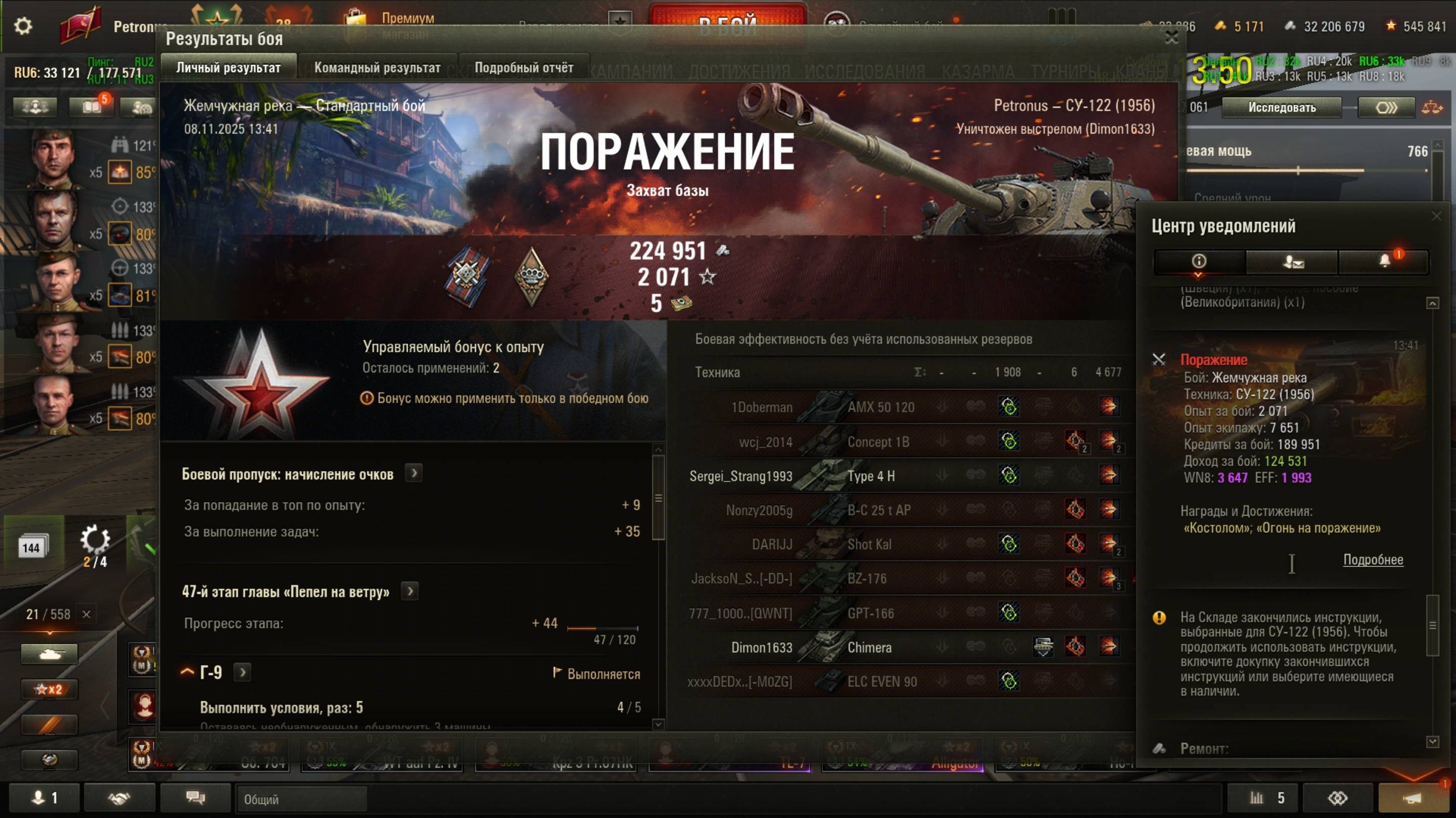 2025.11.08 СУ-122 (1956), Жемчужная река, 4677 урон, 1908 засвет, 1 фраг