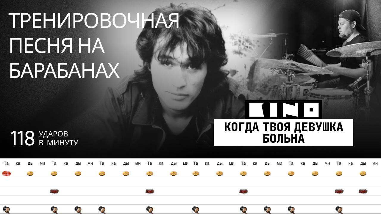 Кино - Когда твоя девушка больна / 118 bpm / Тренировочная песня для барабанов