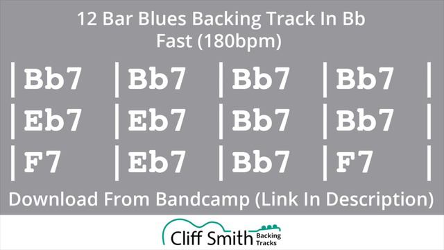 Download this fast 12 bar blues backing track in Bb: https://cliffsmith.bandcamp.com/track/fast-12-bar-blues-backing-track-in-bb-180bpm Chords I7 IV7 V7 from the key of Bb major: Bb7 Eb7 F7. You can practice your chord playing, solo over the track, or jam along on bass or drums! For soloing, try using the Bb mixolydian mode, Bb minor pentatonic scale, Bb major pentatonic scale, Bb blues scale, or Bb7 Eb7 F7 arpeggios to match the chords. This backing track is very fast, with a 'Stevie Ray Vaughan' Texas blues feel. Suitable for the more advanced player! I have many more awesome backing tracks on my channel - please subscribe! 0:00 Chorus 1 0:18 Chorus 2 0:34 Chorus 3 0:50 Chorus 4 1:06 Chorus 5 1:22 Chorus 6 1:38 Chorus 7 1:54 Chorus 8 2:10 Chorus 9 2:26 Chorus 10 2:43 Chorus 11 2:58 Chorus 12 3:14 Chorus 13 3:30 Chorus 14 3:47 Chorus 15 Cliff Smith, BMus (Hons) is guitar, ukulele and music theory tutor who gives lessons online via Zoom. He teaches ukulele, 6 & 12 string acoustic, classical and electric guitar. My lessons channel: https://www.youtube.com/c/CLIFFSMITHGUITARLESSONS https://cliffsmithguitarlessons.co.uk/ https://cliffsmith.bandcamp.com/ https://www.facebook.com/cliffsmithguitarlessons https://twitter.com/CliffSmithgtr https://www.instagram.com/cliffsmithguitarlessons/