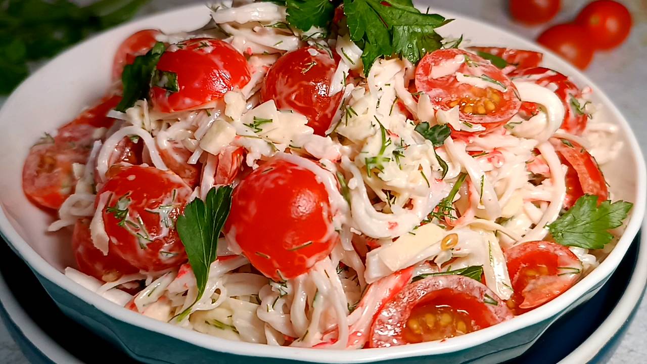 Вкусный, сочный и нежный Салат Красное море за 5 минут! Всего 3 простых продукта в составе. ⭐ ИНГРЕДИЕНТЫ: - Крабовое мясо / или палочки - 250г - Помидоры Черри - 200г (можно обычные - 2 шт) - Сыр твердый - 60г - Чеснок - 2 зубчика - Майонез - 2 ст.л - Укроп, петрушка - по вкусу Приятного аппетита! ****************** Видео можно поделиться в Ватсап, ВКонтакте, Одноклассники Ссылка на это видео: https://home.strannik-j.org/video/private/882c21c58104fa2823cefaf6b8a17e7c/?p=wibwCLjl2PSI92oied4oXw Нажимайте 🚀 и делитесь комментариями 😊💬 Музыка: Сергей Аверьянов Ссылка на канал: https://www.realrocks.ru/averyan/music/ #сезонконтентаRUTUBE #крабовыйсалат #салатскрабовымипалочками #крабовыйсалатрецепт #праздничныесалаты #салатынапраздничныйстол #вкусныесалатынапраздничный