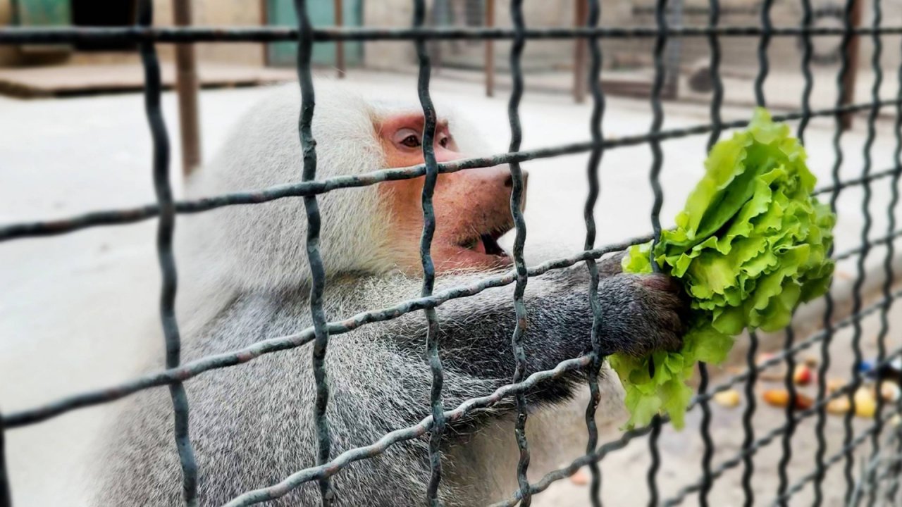 Джоник - любитель салата и любимец публики! Самый воспитанный гамадрил Тайгана! Чудо, а не обезьяна!