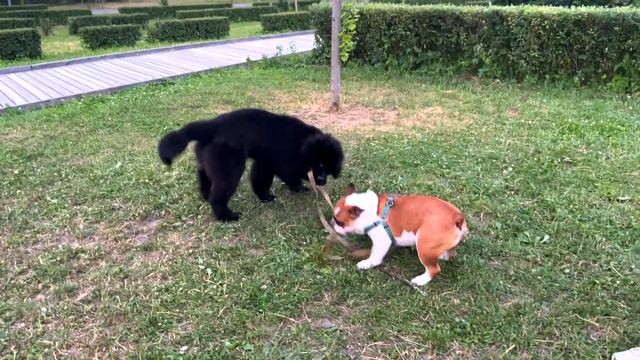 Черри и маленький Буран // Обучаем правильным играм кроху ньюфаундленда