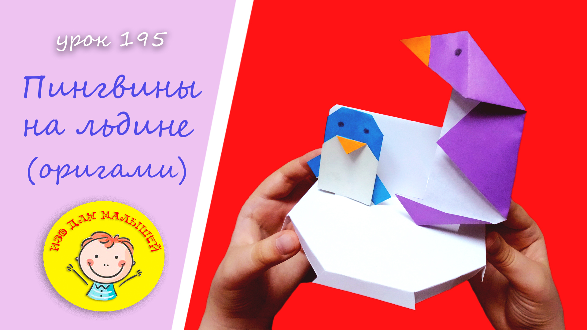 Как сделать ПИНГВИНОВ из бумаги - УРОК 195. Тема: "пингвины на льдине"- оригами