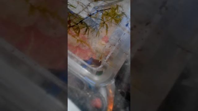 2х недельный тритон ест гусеницу