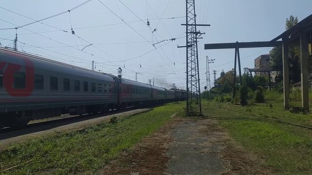 Тепловоз"2ТЭ116Y-0200" с поездом "Сухум-Москва" отправляется с Сухумского вокзала.