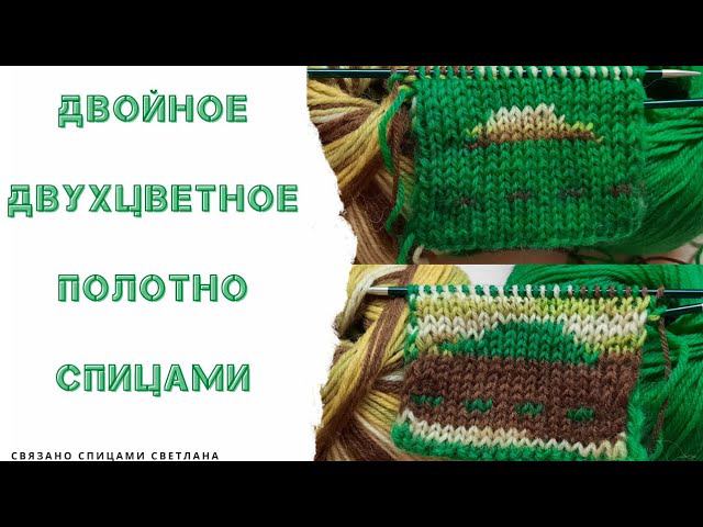Двойное двухцветное полотно спицами/Двустороннее разноцветное вязание/ Двухцветная лицевая гладь