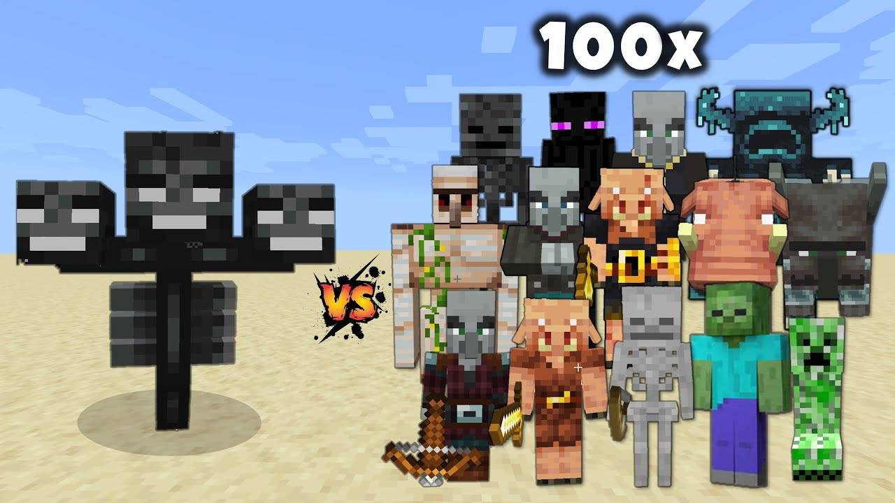 ВИЗЕР ПРОТИВ МОБОВ МАЙНКРАФТ 100Х