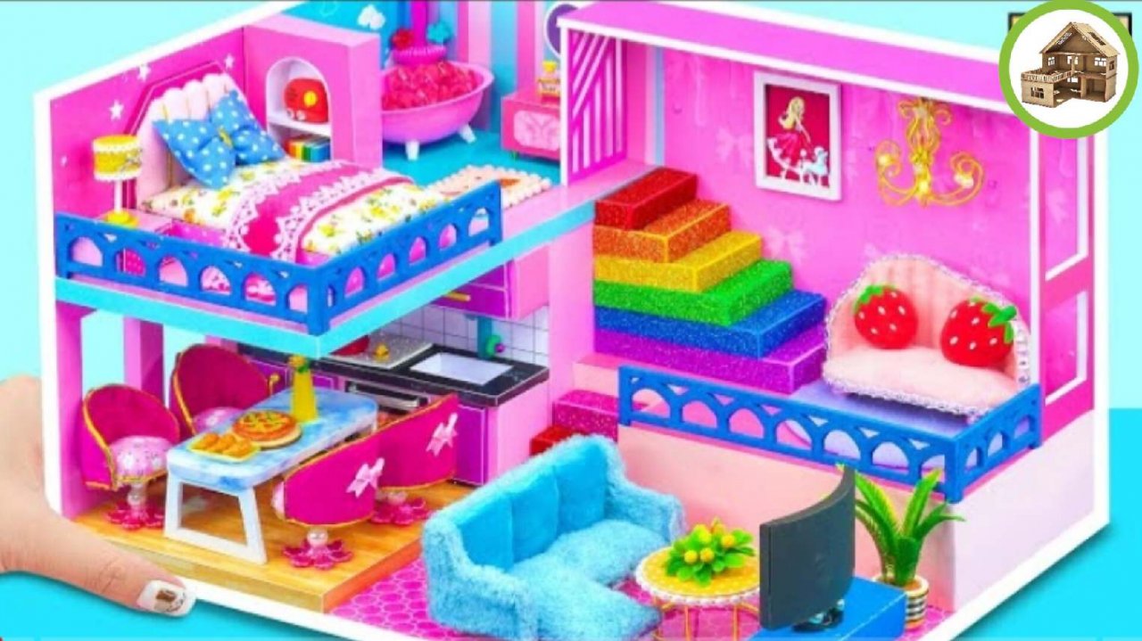 Сделай сам миниатюрный домик | построй миниатюрный милый особняк с ванной комнатой из картона |119