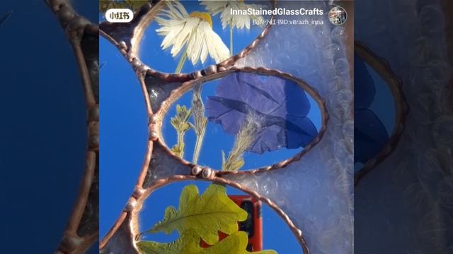 Часы в единственном экземпляре из зеркала и сухих натуральных цветов и листиков в технике Тиффани