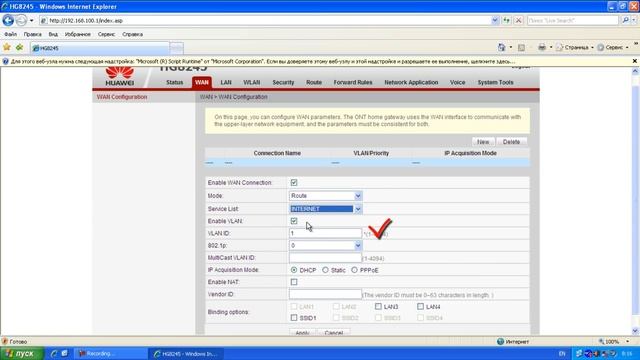 Настройка internet Huawei