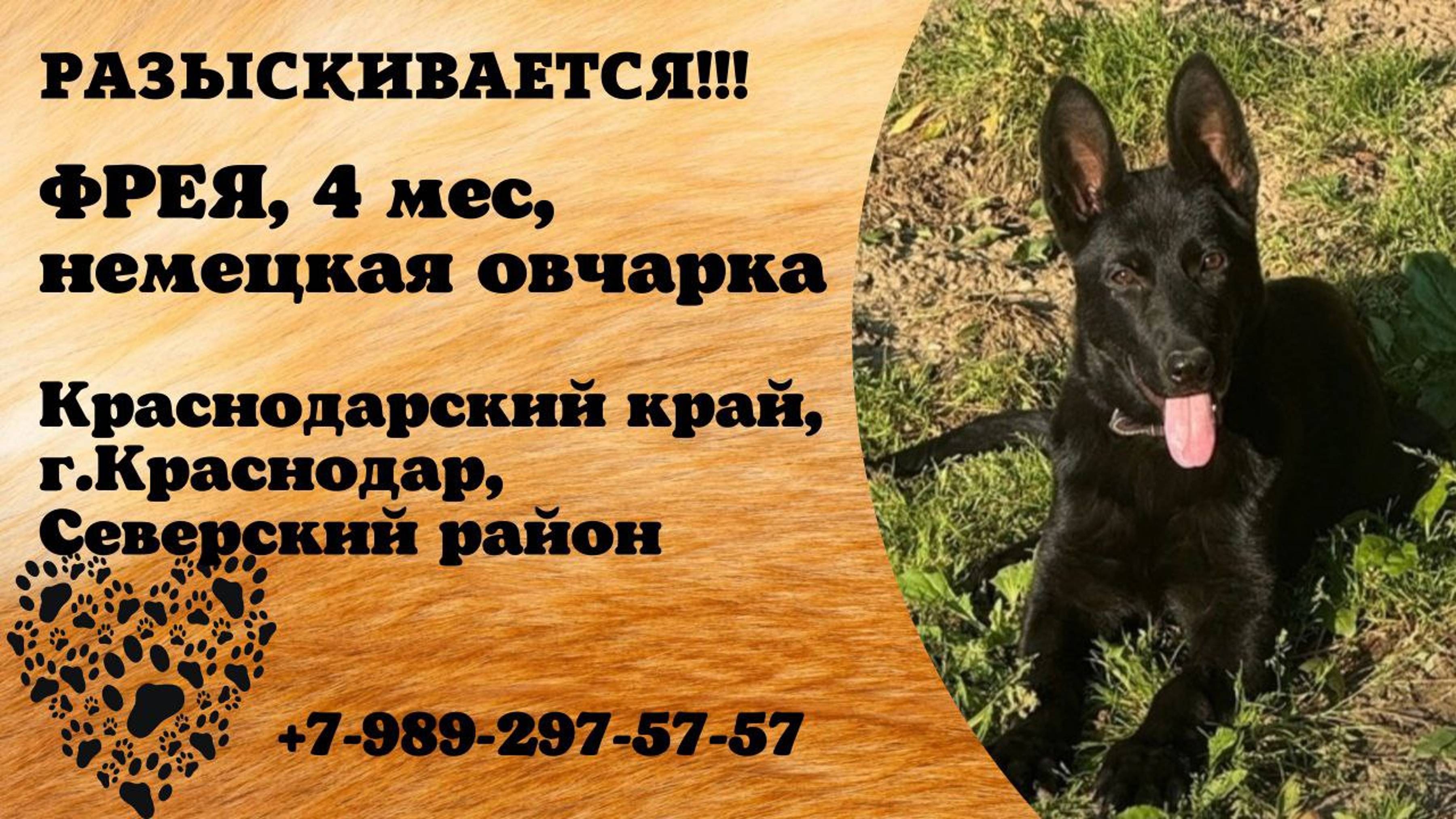 Краснодарский Северский р-н Пропала собака Пропала собака 13.07.25. Девочка, немецкая овчарка, полностью черная, 4 месяца, без ошейника. Откликается на кличку Фрея. С улицей не знакома, на выгуле/самовыгуле не была. Собака нуждается в лечении. Последний раз была в станице Северской на пересечении улицы Ленина и 2-й переулок Мира Просьба связаться по номеру, если обладаете любой информацией о местонахождении 8-989-297-57-57 Инфо: #пропала_собака#краснодарский#северский#немецкая_овчарка