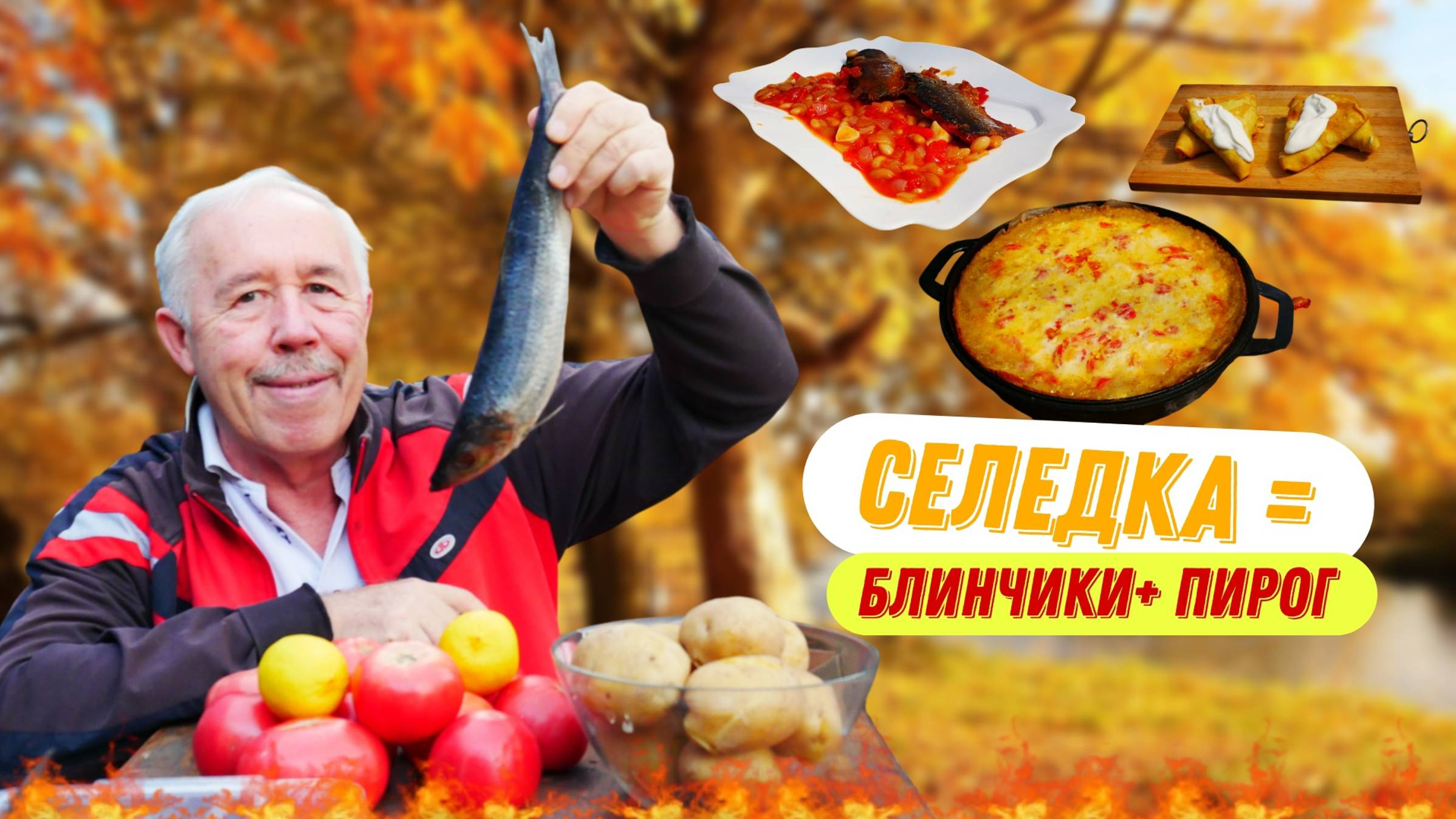 дед мясоед Готовим блюдо из сельди на костре - Вы полюбите такую селедку навсегда. Три варианта приготовления, все хороши, выбирайте на любой вкус. Все новое интересно, хотя найдутся и скептики. Если Вам понравилось блюдо - ставьте лайк и подписывайтесь на мой кулинарный канал!!! ИНГРЕДИЕНТЫ: СЕЛЬДЬ С ФАСОЛЬЮ В ТОМАТЕ - сельдь - 3 шт., фасоль консервированная в томате - 600 грмм. лимон - 1 шт., для жарки - топленое сливочное масло. лук - 5 шт., чеснок - 1 головка., помидоры - 5 шт., соль. перец. КАРТОФЕЛЬНЫЙ ПИРОГ С СЕЛЕДКОЙ - селедка малосол - 2 шт. лук - 4 шт., для жарки топленое сливочное масло. отварной картофель - 9 шт., твердый сыр, свежие помидоры - 5 шт., соль, перец. заливка - сырое яйцо - 3 шт., твердый сыр, сметана. БЛИНЧИКИ С НАЧИНКОЙ ИЗ ТВОРОГА И СЕЛЕДКИ - селедка малосоленая - 2 шт., блинчики, творог - 400 гамм, укроп, сметана 20% #дедмясоед #блюдоизсельдинакостре #какприготовитьселедку #картофельныйпирогсселедкой #вторыеблюдасселедкой #вкуснаяселедка #селедка #еда #кулинария #рутуб