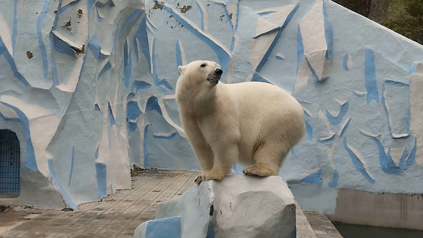 Новосибирский зоопарк, его обитатели: белые медведи и Царь зверей.