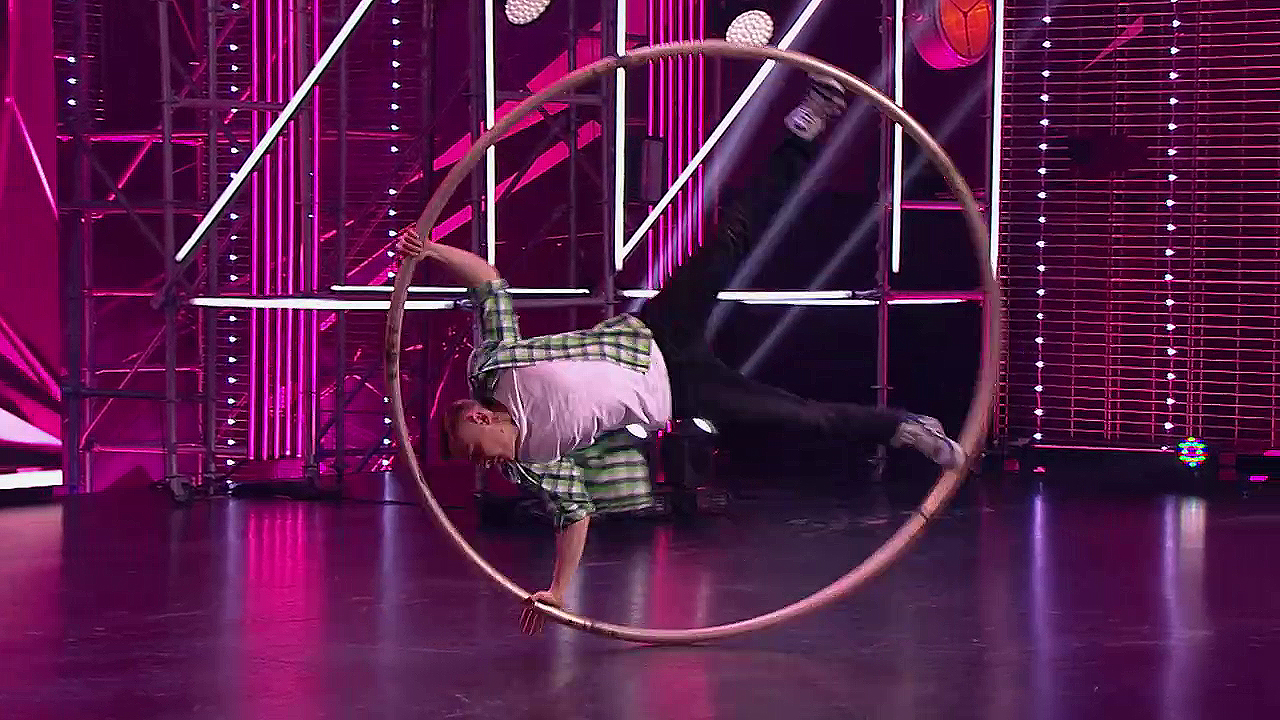 25 лет, г.Минск. Миша продемонстрировал безумно крутой и невероятно интересный номер с огромным кольцом, в котором парень кружился и вертелся. Даже Оля Бузова в восторге!
