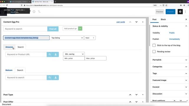 Content Egg plugin official website: https://www.keywordrush.com/contentegg 0:08 - Create an autoblogging task 0:19 - Add keywords 0:34 - Use spin syntax for titles and article text 0:55 - Add shortcodes 1:50 - Results