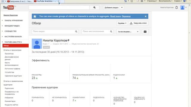 как посмотреть сколько подпищиков и сколько просмотров на вашем канале (2013)