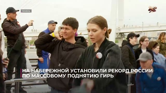 В День Победы на тюменской Набережной у моста Влюбленных тюменцы установили общероссийский рекорд по одновременному массовому поднятию гирь. 590 участников - такая цифра записана в Книге рекордов России. Подробнее в сюжете ТСН "Тюменское время"