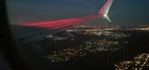 Взлет и посадка, а также полет над ночной Москвой.Вид из иллюминатора