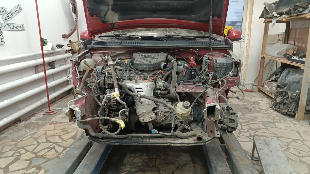 Ремонт Рено Сандеро после удара в переднюю часть.