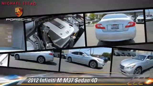 Michael Stead Porsche http://michael-stead.porschedealer.com/preowned/Porsche/search.php - Used, Walnut Creek, Concord, Livermore, Dublin, Oakland, Automall, CA 2555 North Main Street Walnut Creek CA 94596 866-732-4131 2012 Infiniti M M37 Sedan 4D http://www.dealerfusion.com/search.asp?mode=detail&dealerlist=000919&inventoryno=2782258 $44,988 Color: Silver Engine: V6 3.7 Liter Transmission: Automatic 7-Spd w/Overdrive & Miles: 6051 VIN: JN1BY1AP6CM334598 Stock: 213P273A This vehicle features: RWD, ABS (4-Wheel), Air Conditioning, Alloy Wheels, AM/FM Stereo, Backup Camera, Bi-HID Headlamps, Bluetooth Wireless, Bose Premium Sound, Cruise Control, Dual Air Bags, Dual Power Seats, F&R Head Curtain Air Bags, Heated Seats, Hill Start Assist, Keyless Entry, Keyless Start, Leather, Moon Roof, MP3 (Single Disc), Navigation System, Power Door Locks, Power Steering, Power Windows, Premium Pkg, Side Air Bags, Technology Pkg, Tilt Wheel, Traction Control, Vehicle Dynamic Control, XM Satellite One at this price! [DFIN:2:2782258:A:02F323EA:8965f11148c0d216fcceba4e430ca64a]
