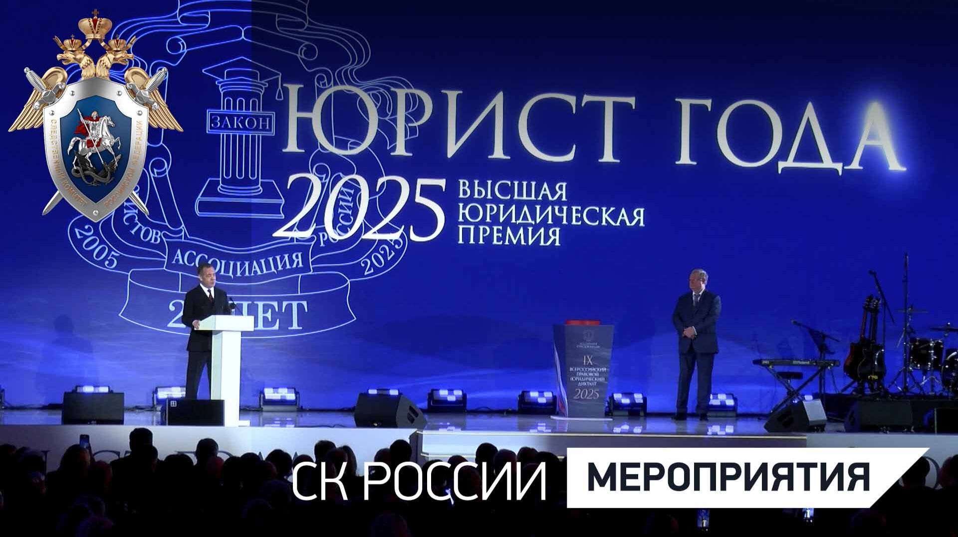 В Москве состоялась торжественная церемония награждения лауреатов Высшей юридической премии «Юрист года». Мероприятие приурочено ко Дню юриста и 20-летию со дня создания Ассоциации юристов РФ. Высокой наградой традиционно отмечаются специалисты, внесшие значительный вклад в формирование правового государства, укрепление законности и правопорядка, защиту прав и свобод граждан, развитие юридической науки. Ассоциация юристов России вручает Высшую юридическую премию «Юрист года» по следующим номинациям: «За вклад в юридическую науку», «Правозащитная деятельность», «Правовое просвещение», «Развитие законодательства», «Юридическое образование и воспитание». В 2025 году учреждена специальная номинация «За особый вклад в развитие государства и права». В торжественной церемонии принял участие Председатель Следственного комитета Российской Федерации Александр Иванович Бастрыкин, который в 2022 году был удостоен высшей профессиональной награды в номинации «Правозащитная деятельность». Почетными гостями церемонии стали: заместитель Председателя Совета Безопасности РФ Д.А. Медведев, Министр юстиции РФ К.А. Чуйченко, председатель Ассоциации юристов России С.В. Степашин, председатель Комитета Совета Федерации по конституционному законодательству и государственному строительству А.А. Клишас и другие. Д.А. Медведев поздравил всех коллег с профессиональным праздником, отдельно отметив работу юристов, оказывающих помощь бойцам СВО и их семьям. В рамках церемонии дан старт Всероссийскому правовому (юридическому) диктанту. На полях мероприятий, приуроченных к 20-летию Ассоциации юристов РФ, заместитель Председателя СК России Александр Вячеславович Федоров презентовал свою книгу «Уголовная ответственность юридических лиц в постсоциалистических государствах Азии», которая получила положительный отклик у читателей. Участники мероприятия отметили важность укрепления юридического сообщества, сохранения лучших традиций отечественной школы права. Было подчеркнуто, что патриотизм юриста — это не громкие слова, а конкретные дела, преданность стране и идее верховенства права. Российский юрист — это призвание на стыке права, нравственности и гражданской ответственности, ежедневный труд, требующий не только интеллекта, но и твёрдого характера, любви к своей стране и глубокого уважения к многовековым традициям правосудия.