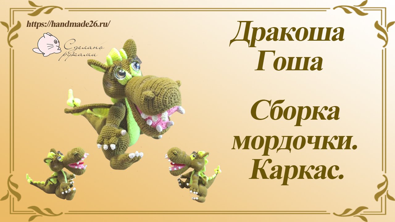 Готовлюсь к году Дракона. Годы Дракона считаются символом жизни как таковой и связаны с ростом благополучия, а сам Дракон почитается как знак небесного могущества. Вот и у меня родился дракон. Дракоша Гоша. Милый, обаятельный, с немного любопытным взглядом. Рост Дракоши 21 см. Размер дракона зависит от выбранных материалов и плотности вязания. Мордочка, туловище и крылья на каркасе, лапки подвижные на ниточном креплении. Это первый мой дракон в этом году. Впереди еще много планов. А пока делюсь этим драконом. Мастер класс "Дракоша Гоша" в формате PDF. Мастер класс содержит 51 страницу подробного описания, 264 фото процесса. Мастер класс высылается на почту. А в этом видео покажу как соединяла части мордочки и делала каркас для мордочки. Мастер класс "Дракоша Гоша" можно найти тут: https://handmade26.ru/product/master-klass-po-vyazaniyu-drakosha-gosha_2525.html Мои мастер классы можно увидеть тут: https://handmade26.ru/catalog/vyazanie/master-klassy/ Мои работы тут: https://handmade26.ru/
