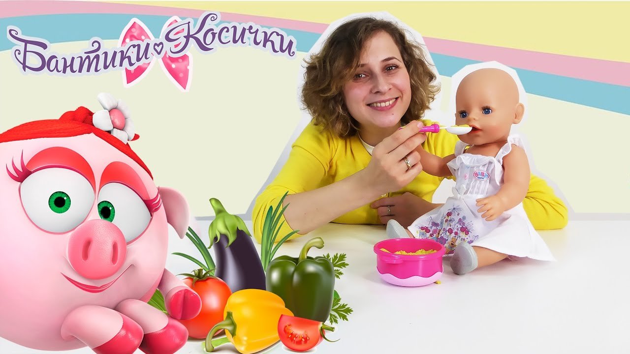 Как приготовить овощной суп для малышки Эмили? Нюша из мультфильма Смешарики и Алиса сегодня расскажут вам, какие овощи для этого подходят и какой рецепт выбрать! Кукла пупсик Эмили будет довольна! Смотри и учись в новом видео для девочек на канале Бантики Косички! Скоро ты увидишь все Новинки на канале Бантики Косички: https://www.youtube.com/channel/UCZJi3695pl6tfkAHp4BLMDA Наши лучшие подружки на канале Cтрана Девчонок: https://www.youtube.com/channel/UCCe6oRAVWZFztZJMAujRu7A Больше видео про игрушки на канале Игромультик: https://www.youtube.com/channel/UC9RFqPpLn4BOZOn7J7kUThA Салон красоты, уроки готовки с любимыми героями на канале Смешарики Live: https://www.youtube.com/channel/UCy15c4beE539pcPFt4-UrHg Заходи на наш сайт: https://www.4screens.ru Ищи нас в социальных сетях! ВКонтакте: https://vk.com/club132423271 Фейсбук: https://www.facebook.com/4ScreensShow Твиттер: https://twitter.com/4Screens_Studio Инстаграм: https://www.instagram.com/4screensstudio