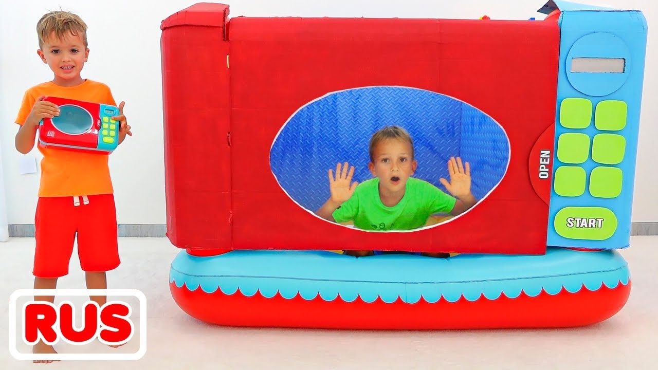Дети играют с волшебной игрушечной микроволновкой! Видео от Влада и Ники!