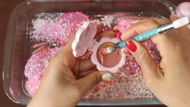 СЛАЙМ - «Розовый цветок» - макияж, детали, блёстки смешиваем в слайм! ★ASMR★