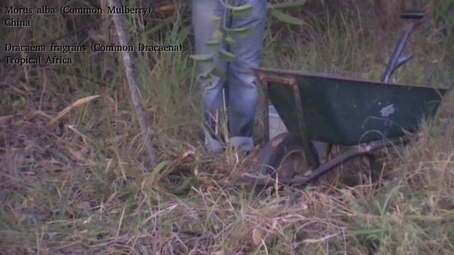 There are a lot of types of Mulberry that I definitely wouldn't be able to separate based on a seedling, but the most likely is Morus alba. But there are definitely a few more around Lusaka. We'll see when it fruits. In a few years. (And to try to keep track - 1 Adansonia, 1 Aloidendron, 1 Alsophila, 5 Anacardium, 4 Annona, 5 Artocarpus, 2 Bambusa, 7 Bauhinia, 4 Brachystegia, 4 Bridelia, 1 Callistemon, 4 Carpentaria, 2 Carya, 1 Caryota, 3 Casimiroa, 1 Ceiba, 2 Cereus, 6 Citrus, 2 Colophospermum, 1 Cydonia, 2 Delonix, 1 Dendrocalamus (hopefully), 1 Dictyosperma, 1 Diospyros, 1 Dodonaea, 1 Dombeya, 1 Dovyalis, 5 Dracaena, 1 Dypsis, 2 Elaeis, 2 Eriobotrya, 3 Eugenia, 4 Euphorbia, 2 Faidherbia, 2 Ficus, 2 Garcinia, 10 Gmelina, 1 Heptapleurum, 3 Jacaranda, 1 Kalanchoe, 1 Kigelia, 1 Laurus, 15 Litchi, 5 Livistona, 4 Mangifera, 2 Macadamia, 1 Melaleuca, 2 Monoon, 1 Morus, 2 Musa, 1 Olea, 18 Pachira, 1 Parinari, 3 Persea, 6 Phoenix, 1 Phyllanthus, 4 Prunus, 3 Rauvolfia, 1 Sabal, 1 Solanum, 2 Spathodea, 1 Steganotaenia, 1 Sterculia, 7 Syagrus, 2 Syzygium, 1 Tamarindus, 2 Terminalia, 2 Thaumatophyllum, 2 Thespesia, 1 Trichilia, 2 Washingtonia, 6 Yucca and 1 Ziziphus for 208 Trees total. Not counting 108 Dracaena fragrans, 1 Dracaena steudneri, 64 Aloe arborescens, 5 Furcraea selloa, 1 Yucca gigantea, 9 Aloe cf. africana, 1 Plumeria cf. rubra and one (probably dwarfing) Pandanus tectorius).
