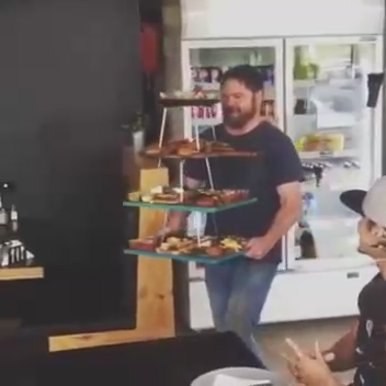 Друзья заказали в ресторане башню из закусок, но официант не справился с ней и уронил все на стол. #кафе #ресторан #закуски #фейл