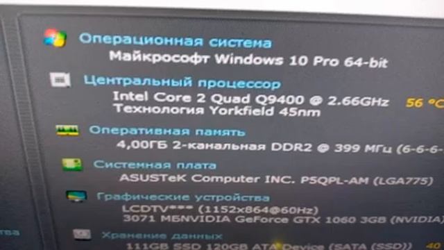Продаю игравой системный блок в нормальном состоянии. Подойдёт для игр, учебы, офиса, магазина, на дачу. Позволяет прогулятся по интернету, пообщаться в соцсетях, посмотреть видео на ютубе , насладиться просмотром закачанных из сети или онлайн любимых фильмов\мультфильмов на мониторе или большом экране TV, поработать и поиграть в игры. ПК очищен от пыли, обслужен, заменена термопаста и смазаны кулера. Система уже настроена, установлена Windows 10 Pro 64-bit все драйвера - включил и пользуйся. Любые тесты и любые проверки у меня дома. Материнская плата - Asus P5QPL-AM Процессор - Intel Core2 Quad Q9400 4 ядра 2,66 GHz Видеокарта - GeForce GTX 1060-3GB Оперативная память - 4 Gb DDR2 800 МГц (новое) SSD - 128 gb (новое) Блок питания 400 W ЦЕНА: 28.000 РУБ ? ? тел: 0721819359 0507786222 Telegram-Viber-WhatsApp группа в контакте: vk.com/public183338126