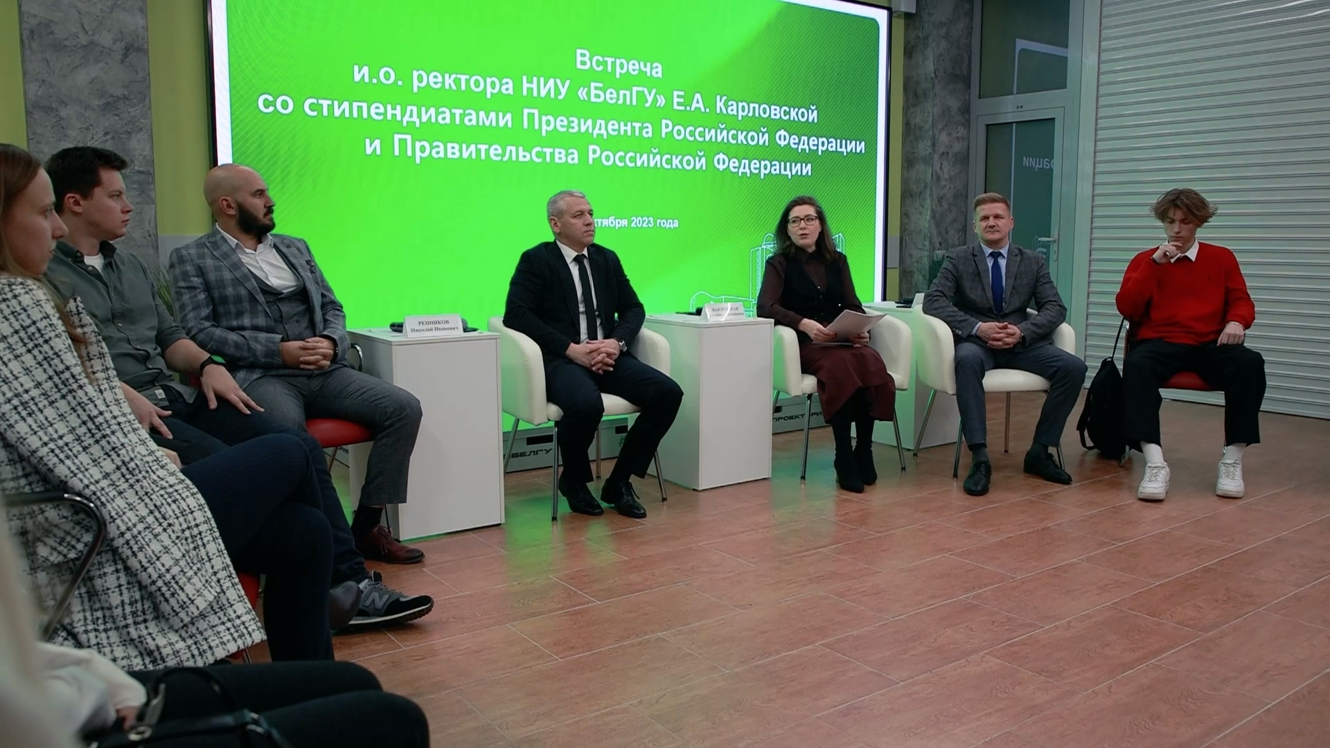 Мероприятие прошло в формате открытого диалога, на котором присутствовали и.о. ректора НИУ «БелГУ» Евгения Карловская, и.о. проректора по науке и инновациям Николай Репников, и.о. проректора по образовательной деятельности Алексей Черницов, а также стипендиаты Президента и Правительства РФ, обучающиеся в разных институтах и колледжах вуза. На встрече обсудили возможности для молодёжной науки и способы привлечения студентов к серьёзным исследованиям.