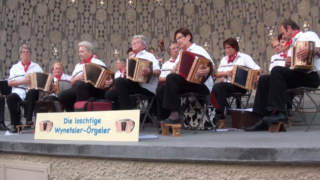 "Die loschtige Wynetaler-Örgeler"; Schwyzerörgeli Grossformation Beromünster; Leitung: Beat Aebersold; Öffentlicher Auftritt im Pavillon Luzern; 10.August 2010