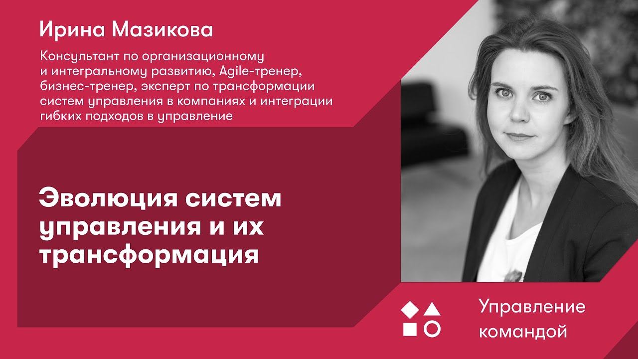 Управление – это… Продолжите, что для вас управление? Чем мы действительно управляем и зачем нам это? Какова цена и ценность в функциях управления? С определенного момента к нам в управление переходило все больше сфер в нашей жизни, все больше ответственности. Вместе с ней росли ожидания и цена, которую мы платили. Далеко не всегда мы были готовы к выходу на новые уровни, особенно, когда речь заходила об управлении командой или организацией – это дополнительная ответственность еще и перед сотрудниками, клиентами, и здесь очень важно вооружиться новыми знаниями и навыками. На вебинаре вместе с экспертом участники разберут эволюцию систем управления – плюсы и точки роста каждой. 00:00- Приветственные слова, знакомство со спикером 08:06- Трансформация. Система управления 10:06- Элементы управления 13:07- Карта фокусов внимания в управлении 15:22- Фокус на элементах согласно использующейся системе 22:36- Управление по ценностям 26:53- Управление результативностью 37:03- Управление по ценностям 45:00- Выбор системы управления 50:40- Управление по целям 51:58- Управление результативностью 52:52- Управление по ценностям 54:40- Цикл трансформации 1:06:13- Лидеры трансформации. Команда изменений 1:07:57- Управление популярностями 1:10:29- Трансформация. Квадраты Уилбера 1:12:36- Ассимиляция. Карго-культ: реализация без понимания 1:14:18- Изменение мышления 1:15:30- Ответы на вопросы 1:26:22- Заключительные слова. Заключительное видео